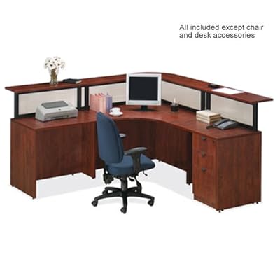 Create an instant office reception desk with this L-shaped office desk and reception counter. This deluxe reception desk features glazed plastic panels for a sleek modern look. No guess work needed to mix and match office furniture when you can order a complete PL Series No. 11. Office Suite available in several color finishes.