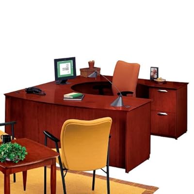 Our Clever collection U Desk with Right Bridge features construction details such as hardwood solids and veneers, with durable high pressure laminate work surfaces. Cockpit design and knife edge work surface style lend this collection a sophisticated contemporary flair. Udesk consists of a left pedestal arc top executive desk, bridge, and right pedestal credenza.Left pedestal arc top desk has two box drawers and one letter size file drawer. All drawers lock and roll on ball bearing slides, full extension for the file drawer and 3/4 extension for the box drawers. File drawer also has heavy duty rods for hanging file folders. Bridge connects desk and credenza, and is hinged to swing toward user. Right pedestal credenza features two letter size file drawers with full extension ball bearing slides and heavy duty rods.Grommet holes in all surfaces help moves wires away from your work area. Ships fully assembled. D35031