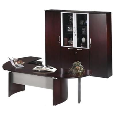 About the Napoli L Shaped Desk with CabinetsThe Napoli veneer desk system features Italian-influenced, sophisticated styling for business or home office. This set includes an L-shaped desk with a matching high cabinet and wardrobe cabinets. Available in three rich finishes, this quality office furniture features AA-grade select North American hardwood veneers throughout. Other details include:Desk top, keyboard return, and extension work surfaces are 1 1/8-inch thick with a distinctive beveled edge All veneer surfaces are protected with two coats of high-tech catalyzed lacquer Sierra Cherry finish on cherry veneer, Mahogany finish on walnut veneer, and Golden Cherry finish on beech veneer All locks are keyed-alike and feature removable cores for installing "keyed-different" locks after-market Napoli desk surface seems to "float" on silver supports for modern look Curved end panels reflect curved ends of work surface Silver modesty panel matches other silver detailing Drawer interiors are finished to match exterior veneer Drawers have solid wood construction and beveled front edge for fluid design Leather-lined interior compartmentsinside center desk drawer Drawers operate smoothly using full-extension, ball-bearing suspension Each wardrobe cabinet includes a sliding wardrobe hanging bar, one fixed shelf, and three adjustable shelves High central cabinet includes glass doors with adjustable shelves Individual Piece Dimensions:Main Desk: 72W x 36D x 29.5H Inches Large Return: 63W x 24D x 29.5H Inches Small Return: 47W x 28D x 29.5H Inches Pencil-Box-File Pedestal: 15W x 22D x 27.5H Inches Left Wardrobe Cabinet: 23 5/8W x 19D x 80H Inches Right Wardrobe Cabinet: 23 5/8W x 19D x 80H Inches Center High Wall Cabinet: 40W x 19D x 80H Inches