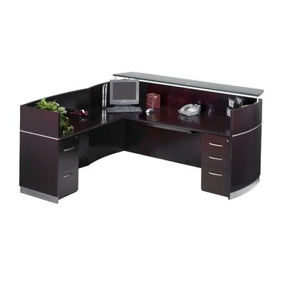 NRSLBF Finish: Mahogany Features: -AA-grade select North American hardwood veneers.-Hand selected veneer to ensure matching grain patterns.-2 final coats of high-tech catalyzed lacquer.-Curved end panels reflect curved ends of work surface.-Center drawers feature solid wood frame with leather inserts.-Drawers have full-extension ball-bearing suspensions.-Cabinet doors feature self-closing European style hinges.-Locks have removable cores with available master keys.-All locks are keyed alike.-Storage accessories are available to complement the suite.-Extra protective packaging design for safe transport.-Fast, sturdy desk assemble using metal-to-metal cam fasteners.-All file units ship fully assembled. Options: -Available in Sierra Cherry on Cherry Veneer, Mahogany on Walnut Veneer, and Golden Cherry on Beech Veneer. Color/Finish: -File unit drawers feature full-extension ball bearing slides with finished, full-depth interiors. Dimensions: -Overall dimensions: 42.75''H x 86.5''W x 37.25''D.