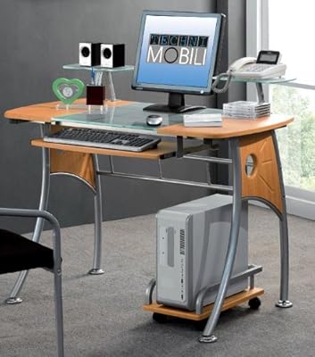 Featuring a slide-out keyboard tray and two repositionable Tempered Glass shelves. Includes a fully mobile CPU Caddy. A stylish top made of Tempered Glass and MDF makes this a perfect Multifunctional home office desk.Color BEECH