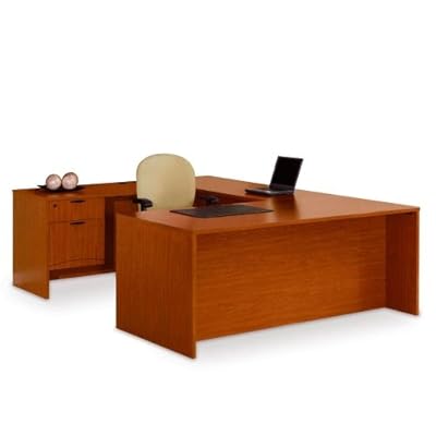 UDesk with Left Bridge brings a fresh, clean look to your office. Durable yet affordable, this Left UDesk has ample worksurface area for any task. Naturallooking wood grain laminate in rich Amber Cherry, Mocha, and Cordovan finishes.Features two fully extending file drawers with locks. Kneespace room is 547/8''W. Optional keyboard tray available. Ships fully assembled.This product has been Level certified. Level certified means the product, production processes, and the manufacturer have met sustainability standards through a multiattribute scorecard. The scorecard takes into account materials, energy and atmosphere, human and ecosystem health, and social responsibility. 15865