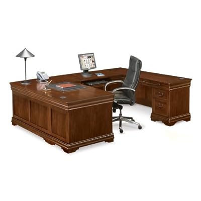 You've made it, and now it's time to savor the moment. This fine Udesk, part of a collection designed exclusively for NBF, exemplifies professionalism, integrity, and hard work the same qualities as you. Offering luxurious details and superb craftsmanship, this Udesk exudes pride and confidence.The Udesk features a singlepedestal desk with bridge and righthand, singlepedestal credenza. Fullextension pedestals are in box/file configuration. Center drawer provided with credenza. Desk and bridge have grommets for wire management. Right return only. Ships partially assembled, simply attach bridge.This product has been Greenguard certified to support better indoor air quality for offices, homes, schools and healthcare facilities. Products that are Greenguard certified are regularly tested to ensure that their chemical and particle emissions meet acceptable pollutant standards. 13265