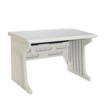 Ergonomically designed for your comfort. Blow-molded, high-density polyethylene construction is dent- and scratch-resistant, as well as easily washable. Desktop features reversible inlays for either a solid gray or granite-textured surface. Cable management for loose cords and wires. Three-quarter height modesty panel for privacy. Easy assembly. Color: Granite; Light Gray; Platinum; Top Shape: Rectangular.