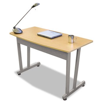 Scratch- and stain-resistant woodgrain laminate with durable PVC edge and strong powder coated steel frame. Adjustable leveling glides for stability. Quick and easy assembly in just 7 minutes with no tools required. Added privacy with optional Dividing Panel. Top Shape: Bow Front; Top Material: Woodgrain Laminate; Pedestal Drawers: N/A; Book Box: N/A. Modular pieces work together to create multiple workspace solutions. Scratch- and stain-resistant woodgrain laminate with durable PVC edge. Strong powder coated steel frame and adjustable leveling glides for stability. Quick and easy assembly with no tools required.